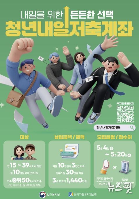 (뉴스핏 = 김호 기자) 부천시는 일하는 저소득층 청년의 안정적인 사회 정착과 자산 형성을 지원하기 위해 ‘2026년 청년내일저축계좌’ 신규 가입자를 5월 4일부터 5월 20일까지 모집한다.