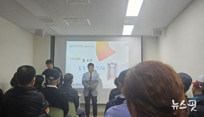 이번 교육은 경기도사회서비스원 경기도노인일자리지원센터가 추진하는 사업으로 노인일자리 참여 어르신을 대상으로 승강기 안전수칙과 중대재해 예방 행동요령을 교육하고 현장 안전의식을 높이기 위해 마련됐다.
