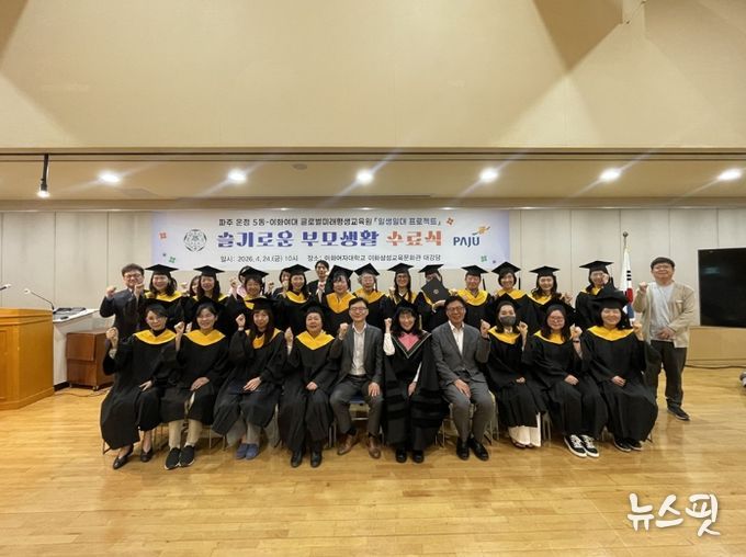 (뉴스핏 = 김호 기자) 파주시 운정5동과 이화여자대학교가 협력해 운영한 평생학습 프로그램 녪년 운정5동-이화여대 일생일대 프로젝트’수료식이 지난 24일 이화여자대학교에서 열렸다.