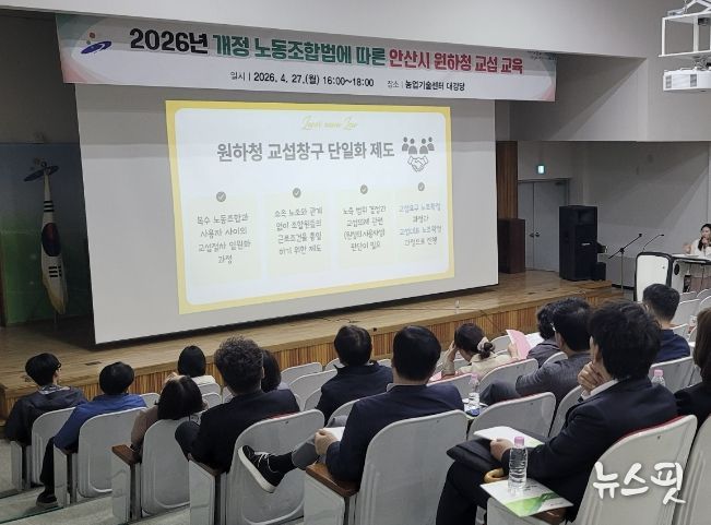 (뉴스핏 = 김호 기자) 안산시는 지난 27일 농업기술센터 대강당에서 5급 이상 간부공무원을 대상으로 원·하청 교섭 교육을 진행했다고 28일 밝혔다.