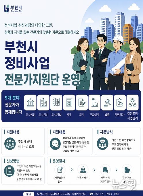 부천시 장환식 주택국장은 “정비사업은 절차가 복잡하고 이해관계가 다양해 조합이 자체적으로 해결하기 어려운 경우가 많다”며 “전문가지원단을 통해 현안에 대한 실질적인 지원을 강화하고 사업이 안정적으로 추진될 수 있도록 돕겠다”고 말했다.