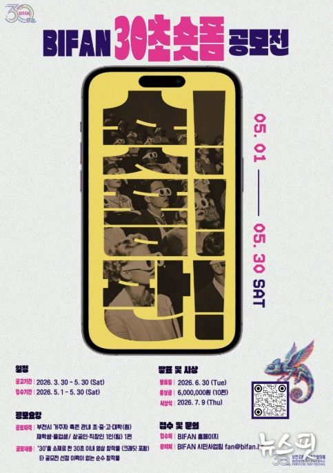 (뉴스핏 = 김호 기자) 부천시는 부천국제판타스틱영화제(BIFAN)와 함께 ‘숏! 폼! 판! BIFAN 30초 숏폼 공모전’을 열고, 제30회를 맞은 영화제를 기념해 시민 참여형 프로그램을 운영한다.