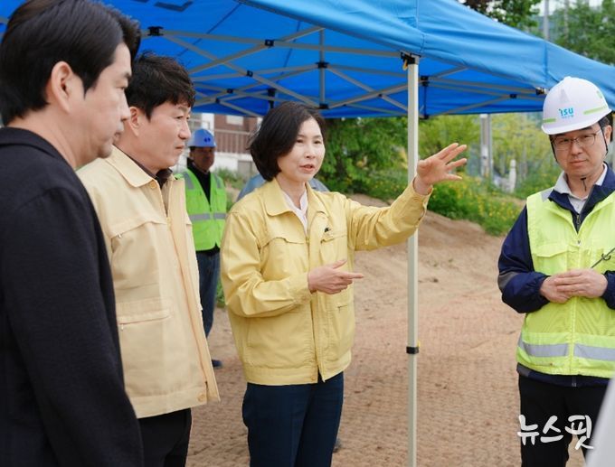 또 공사 과정에서 발생할 수 있는 안전사고를 예방하기 위해 작업자 안전수칙 준수 여부를 확인하고, 공사로 인한 시민 불편을 줄이기 위한 교통 관리 대책도 함께 점검했다. 현장 관계자들과 의견을 나누며 공사 추진 과정에서의 애로사항도 확인했다.