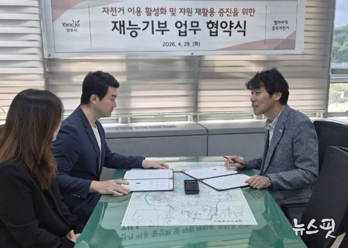 양주시는 28일 자전거 정비업체 ‘벨라비에 중보자전거(대표 이광은)’와 방치 자전거 재활용 및 이용 활성화를 위한 업무협약(MOU)을 체결했다.