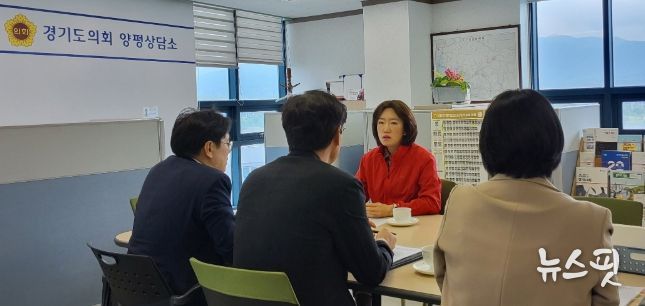 (뉴스핏 = 김수진 기자) 경기도의회 기획재정위원회 부위원장 이혜원 의원 (국민의힘, 양평 2) 은 27일 양평상담소에서 경기도청 기획담당관 관계자와 함께 '경기도 행정기구 및 정원조례 개정' 관련 업무보고를 받고, 국가지원 지방도 건설 사업 및 지방채 발행 관련한 주요 현안을 점검했다.