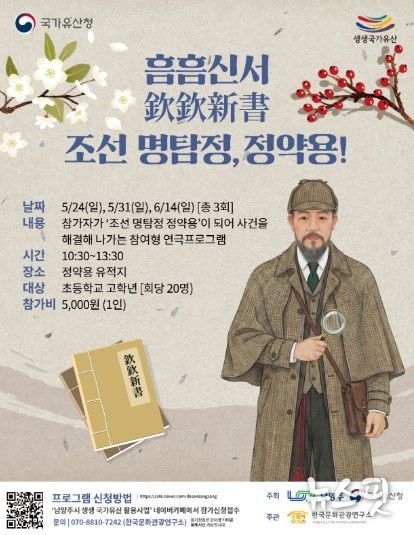(뉴스핏 = 김수진 기자) 남양주시는 오는 5월 24일과 31일, 6월 14일 정약용 유적지에서 초등학교 고학년을 대상으로 참여형 연극 프로그램 ‘흠흠신서: 조선 명탐정, 정약용!’ 참가자를 모집한다고 밝혔다.