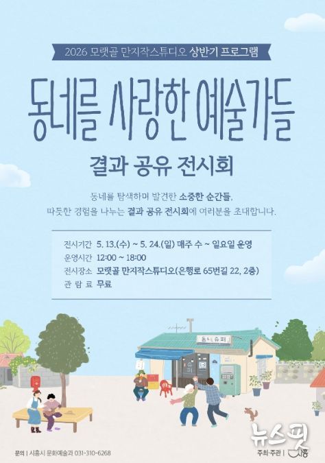 (뉴스핏 = 김수진 기자) 시흥시는 오는 5월 13일부터 24일까지 문화재생공간 모랫골 만지작스튜디오에서 2026년 상반기 프로그램 ‘동네를 사랑한 예술가들’ 결과 공유 전시를 개최한다고 29일 밝혔다.
