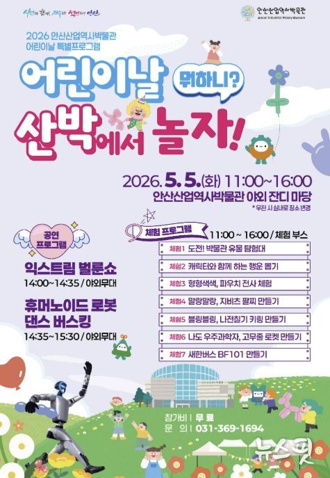 (뉴스핏 = 김수진 기자) 안산시는 내달 5일 어린이날을 맞아 안산산업역사박물관에서 어린이날 특별프로그램 ‘어린이날 뭐하니? 산박에서 놀자!’를 개최한다고 29일 밝혔다.