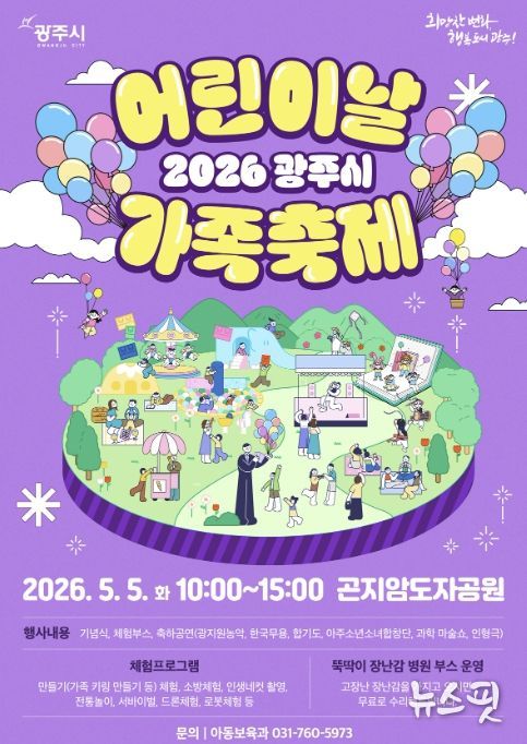 (뉴스핏 = 김수진 기자) 광주시는 제104회 어린이날을 맞아 오는 5월 5일 오전 10시 곤지암도자공원에서 ‘어린이날 가족축제’를 개최한다.