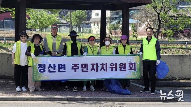 이날 활동은 청산면 주민자치위원 10여 명이 참석한 가운데, 대전리 대전2교차로에서 대전3교차로에 이르는 인도 구간을 중심으로 진행됐다.