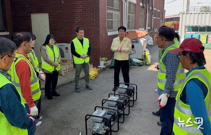 이번 점검에는 자율방재단원과 관계 공무원이 함께 참여해 양수기와 수중펌프 등 수방장비의 작동 상태를 확인하고, 실제 침수 상황을 가정한 시운전을 통해 현장 대응력을 점검했다.