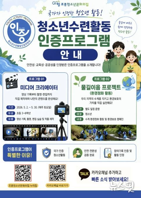 인증을 받은 프로그램은 ‘미디어 크리에이터’와 ‘물길이음 프로젝트’다. 두 프로그램은 국가로부터 안정성과 공공성, 교육성을 공식 인정받았다.