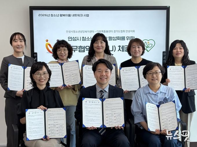 (뉴스핏 = 김수진 기자) 안성시청소년상담복지센터는 지난 27일 안성맞춤공감센터에서 다함께돌봄센터 경기도협의회 안성지회와 청소년의 건강한 성장과 복지 증진을 위한 업무협약(MOU)을 체결했다.
