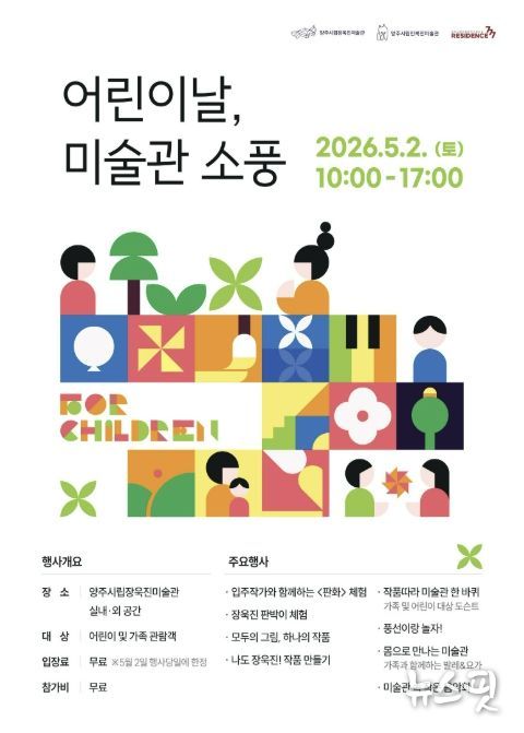 (뉴스핏 = 김수진 기자) 양주시는 오는 5월 2일 양주시립장욱진미술관 실내외 공간에서 어린이날 맞이 가족 문화행사 ‘어린이날, 미술관 소풍’을 개최한다.