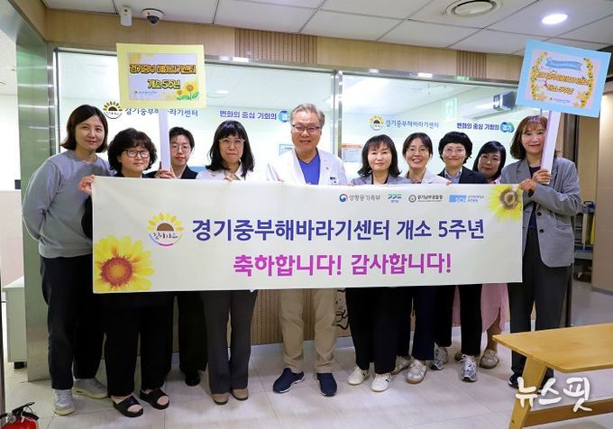 경기중부해바라기센터는 2021년 1월 개소 이후 5년간 성폭력·가정폭력·성매매·스토킹·교제폭력 피해자 2,427명에게 7만 1,325건의 통합지원 서비스를 제공했다. 이 가운데 의료지원은 1만 7,278건에 달했다. 센터는 365일 24시간 운영 체계를 바탕으로 경기 중‧서부권 피해자들에게 신속하고 전문적인 통합지원을 제공하며 지역 내 든든한 안전망 역할을 해왔다.