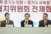 (뉴스핏 = 김수진 기자) 경기도교육청과 경기도의회가 2026년도 본예산 편성 과정에서 총 2000억 원 규모의 협치 예산을 공동으로 추진하기로 합의하며 교육 협력의 새로운 전기를 열었다. 경기도교육청은 5일 도의회 예담채에서 ‘경기도의회-경기도교육청 제1차 여야정 협치위원회 전체회의’를 개최했다. 이번 회의는 도의회와 교육청이 함께 2026년도 협치 예산 합의문에 서명하며 지속 가능한 교육정책 협력체계를 공고히 하고자 마련됐다. 공동의장 3인은 합의문에 서명하며 교육청과 도의회 간 협치의지를 공식화했다. 합의를 통해 ▲현장 중심 학교운영 ▲교육행정 개선 ▲미래교육 전환 ▲교육환경 개선 ▲맞춤형 교육확대 등 5대 분야 총 2,000억 원 규모 협치 예산을 공동 추진하기로 했다. 임태희 교육감은 인사 말씀을 통해 “여야정 협의가 늘 화두로 떠오르는데 실제로 결실은 많치 않다”며 “이런 점에서 대단히 성숙하고 건강한 도정의 협치 모습을 보이는 현장이라고 생각한다”고 말했다. 이어 “최종적으로 학생과 교육 현장의 학부모, 교직원들을 위해 앞으로 후속 조치를 함께 해주시길 바란다”며 “이견이 생기더라도 목표가 같기 때문에 허심탄회하게 대응하고 협치로 경기미래교육의