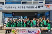 (뉴스핏 = 김수진 기자) 안성시 양성면새마을지도자·부녀회는 3일 양성면 행정복지센터 앞 주차장에서 “사랑의 만두 나눔” 행사를 통해 지역사회에 온정을 나누었다. 이날 행사에는 새마을 회원 40여 명이 참여해 정성껏 빚은 만두와 떡국떡을 포장하여 관내 독거노인, 취약계층 등 105가구에 직접 전달하고, 따뜻한 안부 인사를 나누는 시간을 가졌다. 정인채 새마을지도자협의회 회장은 “갑자기 쌀쌀해진 날씨에 이웃들이 만두를 드시며 몸도 마음도 따뜻해지기를 바라는 마음으로 행사를 준비했다”라며 “앞으로도 지역사회 나눔 실천에 앞장서겠다”고 말했다. 최경미 새마을부녀회장은 “회원들과 함께 정성을 담아 준비한 음식이 이웃들에게 작은 위로가 됐으면 좋겠다”며 “앞으로도 다양한 봉사활동을 통해 따뜻한 지역사회를 만들어가겠다”고 소감을 전했다. 이번 행사는 한국전력공사 경인건설본부의 후원으로 진행됐으며, 양성면 새마을지도자협의회와 부녀회는 앞으로도 지속적인 나눔 활동을 통해 지역사회에 사랑과 희망을 전할 계획이다.
