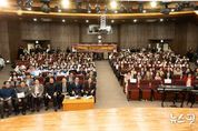 (뉴스핏 = 김수진 기자) 남양주시의회는 6일 남양주체육문화센터 실내체육관에서 열린 ‘2025년 남양주시 자원봉사 대축제’에 참석해 올 한 해 헌신과 봉사에 힘쓴 자원봉사자들을 격려했다. (사)남양주시자원봉사센터가 주최‧주관한 이날 행사는 12월 5일 자원봉사자의 날을 기념해 지역사회를 위해 헌신한 자원봉사자들의 노고를 기리고, 한 해 동안의 자원봉사 활동을 끝맺음하는 축제의 장으로 마련됐으며, 조성대 의장과 시의원 및 주광덕 남양주시장, 관내 자원봉사자 등 1,300여명이 참석했다. 행사는 줌바댄스 ‘아이린줌바크루’ 식전공연을 시작으로 1부는 △자원봉사이그나이트 발표 △축하공연(캘리그래피 퍼포먼스‘캘리깡패’및 가수 연미연‧이효진), 2부는 △내빈소개 △수상자 활동 영상 상영 △우수자원봉사자 시상 및 축사 순서로 진행됐으며, 부대행사로 자원봉사자 응원 포토존, 아트봉사단, 손마사지 봉사단, 느티나무 봉사단 등 다양한 부스가 운영됐다. 조성대 의장은 축사를 통해 “한 해 동안 지역 곳곳에서 묵묵히 헌신해 주신 자원봉사자 여러분께 깊은 감사와 존경의 인사를 드리며, 우리시 인구 28%에 해당하는 20만명의 자원봉사자들께서 도움이 필요한 곳에 가장 먼저 발걸음해주
