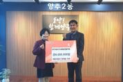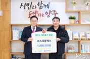 (뉴스핏 = 김호 기자) 양주시가 31일 ㈜스포플렉스로부터 연말을 맞아 이웃돕기 성금 100만 원을 기탁받았다. 이날 기탁식에는 남병태 대표가 참석했으며, 기탁된 성금은 경기 사회복지공동모금회를 통해 양주시 취약계층 지원에 사용될 예정이다. 남병태 대표는 “연말을 맞아 지역의 어려운 이웃들에게 작은 힘이라도 보태고 싶었다”며 “앞으로도 지역사회와 함께하는 기업으로서 나눔을 이어가고 싶다”고 말했다. 시 관계자는 “㈜스포플렉스의 따뜻한 기부에 감사드리며, 기부금이 꼭 필요한 곳에 잘 전달돼 많은 분들에게 힘이 될 수 있도록 최선을 다하겠다”고 전했다. 한편 광적면에 소재한 ㈜스포플렉스는 헬스기구 제조업체로, 사회적 책임을 실천하며 나눔 활동에 동참하고 있다.