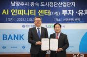 (뉴스핏 = 김수진 기자) 남양주시는 5일 서울 중구 신한은행 본점에서 신한금융그룹과 왕숙 도시첨단산업단지 내 ‘AI 인피니티 센터’ 투자유치를 위한 업무협약을 체결했다. 이번 협약은 신한금융그룹의 금융 AI 선도기술 확보를 위한 핵심 사업으로, 시는 약 8,500억 원 규모의 민간 투자를 통해 왕숙 도시첨단산업단지의 경쟁력을 강화하고 첨단 금융·AI 산업 기반을 조성하는 데 속도를 낼 계획이다. 신한금융그룹 ‘AI 인피니티 센터’는 왕숙 도시첨단산업단지 내 약 9만 7,000㎡ 부지에 조성되며, △AI 데이터센터 △업무시설 △R&D 연구시설 등으로 구성된다. 센터가 완공되면 신한금융그룹 임직원과 협력사 직원 등 500여 명이 상주하게 돼, 실제 금융권의 AI 기술 개발·운영이 이뤄지는 핵심 업무 거점으로 자리매김할 것으로 기대된다. 이날 협약식에 참석한 주광덕 시장은 “오늘 협약을 통해 남양주시는 다산 정약용의 혁신철학을 미래지향적으로 실현하고, 신한금융그룹은 AI 금융산업의 선도기업으로 거듭날 수 있는 계기가 됐다”며 “남양주를 선택한 신한금융그룹에 놀랄만한 특별한 혜택과 적극적 행정지원을 제공