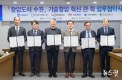 (뉴스핏 = 김수진 기자) 수원특례시가 경기창조경제혁신센터, 4개 대학과 협력해 대학의 기술창업을 발굴하고, 지원한다. 수원시와 경기창조경제혁신센터, 4개 대학은 30일 시청 상황실에서 ‘창업도시 수원 기술창업 혁신 관·학 업무협약’을 체결하고, 협력을 약속했다. 협약 기관들은 대학의 우수한 연구 성과, 인적 자원을 보유한 우수 기술창업기업을 발굴하고, 기술의 사업화를 촉진하기 위해 협력하기로 했다. 수원시는 수원기업새빛펀드의 수원기업 의무투자 약정액으로 투자를 유치하고, 경기창조경제혁신센터는 기업에 멘토링, 엑셀러레이팅(스타트업이 빠르게 성장하도록 지원), 밋업(투자자 유치 행사), 아이알(IR)데이, 투자 등을 지원한다. 대학교는 실험실 창업·창업 보육기업을 추천한다. 이날 협약을 바탕으로 대학창업 특화 프로그램인 ‘새빛 유-테크(U-Tech).판’을 시작한다. 경기창조경제혁신센터의 엑셀러레이팅 인프라를 활용해 우수한 기술력과 성장 잠재력을 갖춘 창업기업을 발굴하고, 기업의 투자 유치 역량을 극대화하는 프로그램이다. 3대 핵심 목표는 ‘인프라 적극 활용’, ‘선순환 구조 구축’, ‘실질적 투자