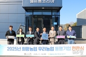 (뉴스핏 = 김수진 기자) NH농협은행 경기본부는 ㈜농업회사법인 샘미트코리아(대표이사 김종필)를 ‘희망농업 우리농가 동행기업’으로 선정하고 화성시 정남면 소재 본사를 찾아 현판식을 개최하고, 소통하는 시간을 가졌다고 18일 밝혔다. ‘희망농업 우리농가 동행기업’은 우리농산물 사용 활성화와 지역 농가와의 상생 경영을 실천하는 우수 농식품 기업을 지원하는 농협은행의 프로젝트로 우리 농산물 구매금액이 매출액의 10% 이상인 우수 농식품 기업을 대상으로 선정하며 선정기업에는 현판식 진행, 금융지원 우대, 판로 확대, 홍보 지원 등 다양한 혜택을 제공한다. 또한 이번 행사에서 농협은행 경기본부는 화성시자원봉사센터에 ㈜농업회사법인 샘미트코리아의 신제품인 ‘바싹한돈’400세트를 기부하여 건강한 먹거리를 나누는 사회공헌활동도 진행했다. 김종필 대표는 “40년 동안 한돈을 키우며 우수한 품질과 철저한 위생관리로 건강한 먹거리 문화를 선도해 온 샘미트코리아를 우수 농식품기업으로 선정해 주셔서 감사하다”며 “앞으로도 지역 축산농가와 함께 성장하며 농협은행과도 동반자 관계를 더욱 돈독히 하겠다”고 말했다. 박정남 농협은행 경기부본부장은 “건강한 먹거리 제공에 기여하는 우수한 농식