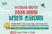 (뉴스핏 = 김호 기자) 남양주시는 10일부터 22일까지 시 전역에서 ‘설맞이 우리동네 새단장 남양주 쓰담데이 집중 추진기간’을 운영한다고 밝혔다. 이번 집중 추진은 설 명절을 앞두고 생활권 주변 환경을 정비하고 시민이 일상 속에서 실천하는 환경정화 활동을 확산하기 위해 마련됐다. ‘남양주 쓰담데이’는 시가 운영하는 대표적인 시민참여형 환경정화 프로그램이다. 특히 이번 쓰담데이는 행정안전부가 추진하는 전국 단위 환경정화 캠페인 ‘우리동네 새단장’과 연계해 추진한다. 지역별·단체별 자율 참여를 통해 공동체 중심의 환경 개선 활동을 확산하는 데 의미를 둔다. 2026년 현재 쓰담데이에는 약 5,200명과 277개 단체가 참여한다. △환경보호단체 △지역사회단체 △우리아파트봉사단 △상인회 등 다양한 주체가 정기적인 활동을 이어가고 있다. 시는 이번 집중 추진기간을 통해 명절 전 도시 환경을 정비하고, 시민 주도의 환경보전 실천 분위기를 확산시킬 방침이다. 이후에도 시민 중심의 자율적인 마을 단위 쓰담데이를 위한 행정적 지원을 지속할 계획이다. 쓰담데이 참여를 희망하는 시민은 남양주시 자원봉사센