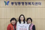 (뉴스핏 = 김수진 기자) 오산시 중앙동 행정복지센터는 지난 9일 바로커치킨 모임으로부터 새해를 맞아 취약계층 지원을 위한 후원성금 50만 원을 기탁받았다고 밝혔다. 이번 기탁은 중앙동에서 추진 중인 ‘해뜰릴레이’의 첫 번째 나눔으로, ‘해뜰릴레이’는 후원금과 후원품 기부자를 중심으로 릴레이 형식의 나눔을 이어가며 기부 문화 확산과 지속적인 이웃사랑 실천을 도모하는 사업이다. 특히 이번 후원은 2026년 병오년 새해를 여는 첫 해뜰릴레이로, 지역사회에 따뜻한 나눔의 의미를 더했다. 홍연화 바로커치킨 모임 대표는 “새해를 맞아 주변 이웃들에게 작은 힘이 되고 싶어 회원들과 함께 뜻을 모았다”며 “이번 나눔을 계기로 더 많은 따뜻한 손길이 이어지길 바란다”고 말했다. 백경희 중앙동장은 “새해의 시작과 함께 어려운 이웃을 먼저 생각해주신 바로커치킨 모임에 감사드린다”며 “이번 첫 나눔이 마중물이 되어 더 많은 기부와 참여로 이어질 수 있도록 중앙동에서도 촘촘한 복지 실현에 힘쓰겠다”고 밝혔다.