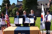 (뉴스핏 = 김수진 기자) 평택시의회는 22일 미국 애니 라이트 스쿨에서 열린 협약식에 참석해 양해각서(MOU)를 체결하며, 평택국제학교 설립을 공식화했다. 이날 협약식에는 강정구 평택시의회 의장, 정장선 평택시장, 애니 라이트 스쿨 데이비드 오버튼 이사장, 제이크 과드놀라 교장을 비롯한 학교 관계자, 학부모, 학생, 지역 인사들이 함께했다. 협약식에 이어 열린 리셉션에는 메를린 스트릭랜드 연방 하원의원, 데니 헥 워싱턴주 부주지사, 라이언 멜로 피어스 카운티 행정수반 등 지역 주요 인사들이 참석해 지역 협력을 논의했다. 강정구 의장은 “오늘 양해각서(MOU) 체결을 계기로 평택국제학교 설립에 필요한 실무적 협의를 완료하고 교육환경 선진사례를 직접 확인함으로써 평택시의 글로벌 교육환경이 조속히 조성되기를 바란다”라며 “시민들에게 실질적인 혜택이 돌아가도록 꼼꼼히 점검하고 정책에 반영하겠다”고 밝혔다.