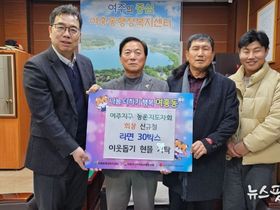 (뉴스핏 = 김호 기자) 여주시 중앙동행정복지센터는 올해 4월부터 꾸준히 이어진 개인 기부자의 나눔이 지역사회에 큰 귀감이 되고 있다고 12일 밝혔다. 여주농협에 근무하는 김광태씨는 지난 4월 첫 기부를 시작으로 12월까지 총 9차례에 걸쳐 라면, 두유, 선풍기, 김, 곰탕 등 생활에 꼭 필요한 물품을 정성스럽게 마련해 기부했다. 누적 기부 금액은 600만 원 상당에 이른다. 김광태씨가 전한 물품들은 중앙동지역사회보장협의체에서 추진하는 ‘나눔냉장고 사업’을 통해 관내 취약계층 및 복지사각지대 가구에 전달되며 큰 힘이 되고 있다. 특히 올해 마지막 기부로는 곰탕 540개를 기탁하며 연말을 더욱 따뜻하게 만들었고, 지속적이고 꾸준한 나눔 실천은 지역주민들에게 깊은 감동과 울림을 주고 있다. 아울러 김광태 씨는 지역사회 발전에 기여한 공로로 ‘경기도의회의장상’을 수상해 이웃사랑을 실천하는 모범 시민으로도 인정받았다. 김광태씨는 “부담되지 않는 범위에서 조금씩 나누다 보니 어느새 큰 금액이 됐다.”며 “어려운 이웃들에게 실질적인 도움이 되길 바란다.”고 소감을 전했다. 심우봉 중앙동장은 “한 해 동안 9차례나 이어진 기부는 단순한 나눔을 넘어 지역사회에 큰 희망과
