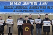 (뉴스핏 = 김수진 기자) 경기도의회 박옥분 의원(더불어민주당, 수원2)은 3일 경기자주통일평화연대·경기민중행동·경기시민사회단체연대회의와 등 시민사회와 함께 ‘윤석열 내란계엄 1년! 완전한 내란청산, 사회대개혁 촉구 경기지역 각계대표자 기자회견’을 추진하며 “경기도에도 여전히 민주주의를 위협하는 내란옹호 세력이 남아 있다”고 강하게 지적했다. 박 의원은 시민사회와 발표한 기자회견문을 인용하며 “지난 1년간 내란세력은 처벌을 피해 정치·행정 곳곳에 뿌리 깊게 잔존해 왔으며, 특히 일부 세력은 민주주의·성평등·지방자치를 후퇴시키는 구태를 반복하고 시민의 힘으로 되돌린 역사를 다시 흔들려 하고 있다”고 밝혔다. 또한 박 의원은 최근 경기도에서 나타나는 여러 정치적 퇴행과 극단적 분열 조장 행위가 “기자회견문에서 지적된 내란옹호 세력의 방해 기조와 맞닿아 있다”며 “시민의 목소리를 왜곡하고 민주주의의 기본 원칙을 흔드는 어떠한 시도도 단호히 바로잡겠다”고 밝혔다. 아울러 박 의원은 시민사회가 공동으로 선언한 ▲시민의 힘으로 내란세력 청산 ▲민주 주권 수호 ▲내란동조·국민배신 정당 국민의힘 해산 요구, ▲주권자의 요구인 사회대개혁 실현 등의 핵심 메시지를 함께 강조하
