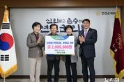 (뉴스핏 = 김수진 기자) 연천군의회는 2025년 12월 3일, 겨울철 난방비 부담이 큰 취약계층을 지원하기 위해 전 의원이 뜻을 모아 연천연탄은행에 후원금 200만원을 전달했다. 이번 기탁은 연천군의회 의원 전원이 동참해 마련된 것으로, 연천연탄은행이 추진하는 ‘사랑의 연탄나눔’ 활동을 지원하고 지역 내 에너지 취약가구의 동절기 생활 안정을 돕기 위한 취지로 추진됐다. 김미경 의장은 “의원 모두가 마음을 모아 준비한 만큼, 도움이 필요한 이웃들에게 따뜻함이 전해지길 바란다”며 “연탄은행의 꾸준한 현장 활동에 늘 감사드리고, 의회도 지역의 어려운 곳을 더욱 세심하게 살피겠다”고 말했다. 의원들은 이번 기탁을 계기로 연탄나눔 활동과 지역 복지 현장에 대한 관심을 더욱 높이고, 군민의 겨울나기를 돕는 다양한 지원 방안도 함께 모색해 나갈 예정이다. 연천군의회는 앞으로도 지역사회와 함께하는 나눔 활동을 지속적으로 확대하며, 소외되는 군민 없이 모두가 따뜻한 겨울을 보낼 수 있는 환경 조성에 힘쓸 계획이다.