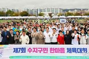 (뉴스핏 = 김수진 기자) 용인특례시 수지구는 18일 아르피아 상부 체육시설에서 ‘제7회 수지구민 한마음 체육대회’를 개최했다. 수지구 체육연합회가 주최·주관한 이번 대회엔 구민 약 2000여 명이 참여해 승부차기, 볼풀공 바구니농구, 줄다리기, 계주 등으로 구민 모두 한마음으로 어우러지는 시간을 보냈다. 또 식전 공연인 동천동 훌라댄스, 신봉동 밸리댄스와 단국대학교 치어리딩팀 ‘아스테르’의 공연, 퓨전 장구, 보컬그룹 ‘뮤랑’, 마술사 홍승인, 초대 가수 김성환 등이 다채로운 무대를 선보였다. 행사장 곳곳에선 화분 만들기, 친환경 리필스테이션(세제 담아가기), MBTI 검사, 캘리그라피 체험, 키링 만들기, 구민 건강 서비스 안내 부스 등 체험 프로그램이 운영됐다. 이상일 시장은 “우리 수지구민들이 모처럼 한자리에 모여 우정을 나누면서 행사를 통해 행복한 시간을 많이 보내시라고 비가 그친 것 같다”며 “수지중앙공원은 축구장 76개 크기의 시민 힐링 공간으로 조성되고 있고, 상현3동 행정복지센터와 함게 건립되는 광교스포츠센터에는 25m레인 10개의 수영장이 들어서게 된다"며 "서울종합운동장역과 수서
