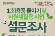 (뉴스핏 = 김호 기자) 동두천시는 깨끗한 도시환경 조성을 위해 추진 중인 '1회용품 줄이기 및 자원 재활용 사업'의 기초자료로 활용하고자 시민 설문을 실시한다고 30일 밝혔다. 이번 설문은 동두천시민이면 누구나 참여할 수 있도록 개인정보 수집, 회원 등록, 로그인 등 별도 절차를 생략하고, 링크 또는 QR코드를 통해 바로 참여할 수 있게 구성했다. 참여 방법은 네이버 설문 링크 링크, 또는 QR코드를 이용하면 되며, 설문은 총 10개 문항으로 이뤄져 있다. 시 관계자는 “10대부터 어르신까지 다양한 시민의 의견을 폭넓게 듣기 위해 시 SNS와 관련 단체를 통해 설문 링크를 공유하고 있다”라며 “설문을 안내받은 시민들도 가족과 지인에게 공유해 참여를 독려해 달라”라고 밝혔다. 박형덕 동두천시장은 “이번 설문 참여와 함께 가정·직장·학교 등 일상에서 1회용품 사용을 줄이고 자원을 재활용하는 실천에 동참해 주시길 바란다”라며 “시는 설문 결과를 바탕으로 관련 사업을 적극 추진하겠다”라고 말했다.