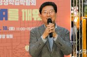 (뉴스핏 = 김수진 기자) 이상일 용인특례시장은 17일 오후 용인시 평생학습관 광장에서 열린 ‘제6회 용인시 평생학습박람회’에 참석해 평생학습 관계자들을 격려하고 시민들과 소통했다. 이번 박람회는 ‘용인, 학습 D·N·A를 깨워라!’를 주제로 시민이 주체가 돼 배우고 나누는 평생학습 문화를 확산하기 위해 마련된 행사로, 17일부터 18일 오후 3시까지 평생학습관 광장 일원에서 진행된다. 이 시장은 이날 기념식에 참석해 평생학습의 지속과 발전에 기여한 유공자 3명에게 표창장을 수여하고, 시민들과 함께 배움을 통한 성장과 실천, 연대의 의미를 공유하는 ‘용인 학습 D·N·A를 깨워라!’ 퍼포먼스에 참여했다. 이상일 시장은 인사말을 통해 “오늘 전시된 다양한 평생학습 결과물은 시민들이 스스로 배움을 이어가며 만들어낸 값진 결과물”이라며 “행사를 위해 애써주신 평생학습 관련 기관 관계자와 강사, 학습자, 수상자 여러분께 깊이 감사드린다”고 말했다. 이 시장은 이어 “평생 학습은 배우는 사람뿐 아니라 가르치는 분들 모두가 함께 성장하고 행복을 느낄 수 있는 과정”이라며 “숨을 쉬는 한 계속 배우고, 배움을