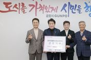 (뉴스핏 = 김수진 기자) 경기 군포시는 지난 19일 경기도마을버스운송사업조합 군포지부로부터 지역 내 어려운 이웃을 돕기 위한 이웃돕기 성금 300만원을 기탁받았다고 밝혔다. 이날 기탁식에는 하은호 군포시장과 경기도마을버스운송사업조합 군포지부 소속 업체(군포운수, 사랑교통, 오성교통, 행복운수) 대표자들이 참석해 담소를 나눴다. 경기도마을버스운송사업조합 군포지부 관계자는“마을버스는 지역 주민의 일상과 가장 가까운 교통수단인 만큼, 지역사회와 상생하는 역할 또한 중요하다고 생각한다”며 “앞으로도 나눔과 사회공헌 활동을 지속적으로 이어가겠다”고 전했다. 이에 하은호 군포시장은 “어려운 시기에도 지역 이웃을 위한 따뜻한 나눔을 실천해 주신 관내 마을버스운송사업조합에 깊이 감사드린다”며 “기부금은 도움이 필요한 분들께 소중히 전달하겠다”고 말했다. 이번 성금은 군포지부 소속 4개 업체의 자발적인 참여로 마련된 것으로, 관내 저소득층·취약계층 지원을 위해 사용될 예정이다.