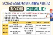 (뉴스핏 = 김호 기자) 광명시가 어르신의 건강한 노후와 사회참여 확대를 위해 노인 일자리 참여 기회를 넓힌다. 시는 오는 12월 1일부터 12일까지 ‘2026년 노인일자리 및 사회활동 지원사업’ 참여자 3천384명을 모집한다. 내년도 사업 예산은 전년보다 1억 7천400만 원이 늘어난 162억 원이 편성됐다. 이번 사업은 ▲노인 공익 활동 ▲노인 역량 활용 ▲공동체 사업단 ▲취업 지원형 등 네 가지 유형으로 운영한다. 노인공익활동은 65세 이상 기초·직역연금 대상 어르신이 지역 환경정비, 공공시설 지원 등 공익 활동에 참여하는 사업이다. 노인역량활용은 돌봄·안전 등 도움이 필요한 가정이나 시설에 서비스를 제공하는 역할을 맡으며, 공동체 사업단은 60세 이상 어르신이 소규모 매장 운영 또는 전문사업단 활동으로 경제활동을 이어갈 수 있도록 지원한다. 취업지원형은 구인 기업과 어르신을 직접 연계해 민간 분야에서 일자리를 찾을 수 있도록 돕는다. 참여를 원하는 어르신은 주소지 동 행정복지센터 또는 7개 수행기관(광명시니어클럽, 대한노인회 광명시지회, 소하노인종합복지관