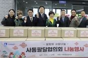(뉴스핏 = 김호 기자) 사통팔달협의회는 지난 5일, 민족 대명절인 설을 앞두고 관내 어려운 이웃을 위한 ‘설맞이 사랑나눔 키트’ 100박스를 수원시 팔달구에 전달했다고 밝혔다. 이번 나눔 행사는 경기 침체와 물가 상승으로 인해 여느 때보다 추운 겨울을 보내고 있을 소외계층에게 따뜻한 명절의 정을 나누기 위해 마련됐으며, 회원들이 십시일반 뜻을 모아 정성스럽게 준비한 ‘사랑나눔 키트’ 100박스는 관내 홀몸 어르신, 한부모 가정 등 취약계층 가구에 전달될 예정이다. 정찬해 사통팔달협의회장은 “우리 이웃들이 설 명절만큼은 외로움 없이 따뜻하고 풍성하게 보내시길 바라는 마음으로 회원들과 정성을 모았다”며, “앞으로도 지역사회의 사각지대를 살피며 소통과 나눔을 이어가는 협의회가 되겠다”고 소감을 밝혔다. 황규돈 팔달구청장은 “매년 명절마다 잊지 않고 이웃사랑을 실천해 주시는 사통팔달협의회 회원분들께 깊은 감사를 드린다”며, “후원해주신 물품은 도움이 필요한 이웃들에게 소중한 마음까지 잘 담아 전달하겠다”고 말했다. 한편, 수원시 팔달구 사통팔달협의회는 지역 발전과 봉사를 위해 만들어진 민간봉사단체로, 매