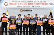 (뉴스핏 = 김수진 기자) 화성특례시의회 수원 군공항 화성시 이전 반대 특별위원회는 10일 대회의실에서 수원시의 ‘수원군공항 이전 국가전략사업 추진’ 및 ‘범정부 수원군공항 이전 TF 구성’ 건의에 대한 반대 규탄 결의문을 발표했다. 이날 김영수 공동위원장은 규탄 결의 취지 발표를 통해 “수원시장은 지난해 12월 8일 화성시와 어떠한 협의도 없이 ‘수원 군공항 이전 국가전략 사업화를 위한 공동건의문’을 국방부에 전달하고, 올해 1월에는 국무총리에게 ‘수원군공항 이전 국가전략사업 추진’을 건의했다”며 “이는 정부 주도로 추진 중인 광주 군공항 이전 TF에 편승해 수원 군공항의 화성시 이전을 국가 책임 사업으로 전환하려는 편법적 시도”라고 강하게 비판했다. 이어 정흥범 공동위원장은 결의문 낭독을 통해 “수원 군공항 이전 사업은 화성시와 화성 시민의 협의와 동의 없이 비민주적인 절차로 추진되고 있으며, 법적·절차적 정당성이 결여된 사업”이라며 “이는 화성시의 자치권을 심각하게 침해하는 사안으로, 결코 국가 주도 사업으로 추진될 수 없다”고 강조했다. 또한 정흥범 위원장은 “화옹지구 인근 우정읍 매향리는 과거 미 공군 폭격훈련장으로 사용되며 극심한 소음과 인명 피해