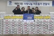 (뉴스핏 = 김호 기자) 수원시 영통구 매탄3동은 지난 4일, 매탄중심상가상인회로부터 설 명절을 맞이해 관내 취약계층을 위한 라면 100박스와 햇반 110박스를 기탁받았다고 밝혔다. 이번 기탁은 설 명절을 앞두고 지역사회에 따뜻한 활력을 불어넣고, 이웃과 함께 정을 나누고자 하는 상인회 회원들의 자발적인 참여로 마련됐다. 기탁된 물품은 매탄3동 행정복지센터를 통해 기초생활수급 가구, 차상위 가구 등 저소득층 이웃들에게 전달되어, 모두가 풍성하고 든든한 명절을 보낼 수 있도록 지원될 예정이다. 정희경 매탄중심상가상인회장은 “설 명절만큼은 우리 주변의 어려운 이웃들이 소외되지 않고 따뜻한 정을 느끼며 든든하게 보내시길 바라는 마음으로 회원들과 정성을 모았다”며, “앞으로도 지역 상인들이 힘을 합쳐 주변을 살피고 나눔을 실천하는 활동에 적극 앞장서겠다”고 전했다. 김병목 매탄3동장은 “매년 명절마다 지역사회를 위한 나눔을 실천해 주시는 매탄중심상가상인회에 진심으로 감사드린다”며 “기탁해 주신 물품은 상인분들의 따뜻한 마음과 함께 관내 어려운 이웃들에게 소중히 전달하겠다”고 감사의 뜻을 전했다. 한편,