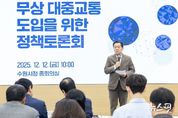 (뉴스핏 = 김호 기자) 수원특례시는 12일 시청 중회의실에서 ‘수원시 무상대중교통 도입 정책토론회’를 열고, ‘수원형 무상대중교통’ 도입 정책 방향을 공유했다. 이날 정책토론회는 주제 발표와 종합토론으로 진행됐다. 김채만 경기연구원 선임연구위원이 ‘미래 대중교통 정책방향-쿠리치바 대중교통 사례’, 김숙희 수원시정연구원 선임연구위원이 ‘수원시 무상대중교통 도입 방향’을 주제로 발표했다. 수원시는 사회초년생 청년과 어르신의 교통비 부담을 덜어주기 위해 내년 1월 1일부터 무상대중교통 지원사업을 시작한다. 지원 대상은 19~23세 청년, 70세 이상 어르신이다(신청일 기준). 19~23세 청년이 K-패스 교통카드로 대중교통을 이용하면 한 달에 최대 2만 3100원(연 27만 7200원)을 환급한다. 어르신은 농협에서 우대 교통카드(G-PASS)를 발급받아 사용하면 실제 사용 금액에 대해 분기별 최대 6만 9300원(연 27만 7200원 한도)를 지원한다. 종합토론에는 아주대학교 오영태 교수, 한국교통연구원 박준식 본부장, 경기대학교 김정화 교수, 경기도 광역교통정책과 윤태완 과장이 참여했다
