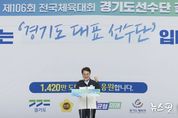 (뉴스핏 = 김수진 기자) 김동연 경기도지사가 17일 부산에서 열리는 제106회 전국체육대회에 참가하는 경기도선수단의 4연패를 기원하며 모든 지원을 아끼지 않겠다는 뜻을 밝혔다. 김동연 지사는 30일 오후 수원월드컵경기장 중앙광장에서 열린 전국체육대회 결단식에서 “경기도는 전국체육대회 3연패, 동계 체육대회 22연패를 이뤘다. 경기도 선수단과 경기도 체육인들이 이룬 성과로 이와 같은 영광 뒤에는 1,420만 도민의 한결같은 지원이 있었다”며 “경기도는 1,420만 도민과 함께 여러분들이 오로지 훈련과 경기에 집중할 수 있도록 모든 지원을 아끼지 않겠다”고 말했다. 김 지사는 이어 결단식이 열린 중앙광장을 경기도선수촌 건립예정지라고 소개한 후 “차질 없이 건립하겠다. 우리 선수단뿐만 아니라 후배들도 무한한 가능성을 발휘할 수 있는 대한민국 체육의 요람으로 이곳을 만들겠다”고 구체적 지원계획도 밝혔다. 그러면서 “여러분들이 흘린 땀, 또 좌절의 순간에도 일어섰던 불굴의 용기가 부산 전국 체육대회에서 좋은 실력과 성과로 이어지길 바란다”며 “전국체육대회 4연패를 응원한다”고 격려했다. 이날 행사에는 경기