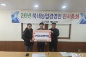 (뉴스핏 = 김호 기자) 여주시 북내면 후계농업경영인회는 지난 20일 북내면 행정복지센터를 방문해 관내 어려운 이웃을 위한 이웃돕기 성금 100만 원을 전달했다. 이번 기탁은 회원들이 뜻을 모아 개최하는 연시총회를 앞두고, 지역사회의 소외된 이웃들이 따뜻한 새해를 맞이하기를 바라는 마음에서 진행됐다. 북내면 후계농업경영인회는 매년 잊지 않고 어려운 이웃을 위한 성금을 기탁하며 지역사회의 귀감이 되고 있다. 전달된 성금은 경기사회복지공동모금회를 통해 북내면 내 저소득층 및 복지 사각지대 가구를 지원하는 사업에 사용될 예정이다.