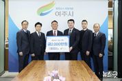 (뉴스핏 = 김호 기자) 오화진 ㈜성용 대표는 지난 10일 여주시청을 방문해 이웃돕기 성금 1000만원을 기탁했다. 기탁식에 참석한 오화진 대표는 “30여년간 지역에서 사업체를 운영하면서 많은 분들로부터 도움을 받아 성장해 왔기에 보답하는 마음으로 그 중 일부를 지역사회에 환원하고자 기탁하게 됐으며, 적은 금액이지만 어려운 이웃을 돕는데 보탬이 됐으면 좋겠다.”며 기부소감을 밝히셨다. 이충우 여주시장은 “어려운 시기임에도 불구하고 기탁해 주신 오화진 대표께 감사드리며, 보내주신 성금은 지역의 취약계층 및 사회복지시설(단체) 등을 돕는데 사용될 예정으로, 주위의 어려운 이웃들이 소외되지 않도록 적극 발굴하고 지원하여 여주시가 따뜻하고 세심한 복지 도시가 될 수 있도록 지속적으로 노력하겠다.” 며 감사의 마음을 전했다. 여주시에서는 지정기탁되는 모든 후원금(품)을 사회복지공동모금회를 통해 적립하여 도움을 필요로 하는 곳에 지원하고 있으며, 지역사회내 기부문화 확산을 위해 지속적으로 많은 분들의 관심과 참여를 기대하고 있다.
