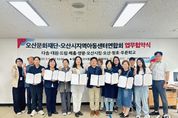 (뉴스핏 = 김수진 기자) 오산문화재단은 9일 오산시지역아동센터연합회와 오산 청소년들이 건강한 사회 구성원으로 성장할 수 있도록 상호협력을 하기 위한 업무협약을 체결했다고 밝혔다. 협약식은 오산문화재단에서 열렸으며, 최상열 오산문화재단 사무국장과 이광훈 오산시지역아동센터연합회장 및 관계자들이 참석한 가운데 진행됐다. 오산시지역아동센터연합회는 '아동복지법' 및 '사회복지사업법'에 근거해 방과 후 돌봄이 필요한 지역 아동의 건전한 성장을 지원하고 종합적인 복지서비스를 제공하는 단체로, 2025년 9월 현재 9개 센터에서 총 272명의 아동을 돌보고 있다. 이번 협약은 청소년들의 열정, 성장, 행복, 창의의 가치를 위해 문화예술교육 및 문화향유를 위한 협력의 중요성을 인식하고 양 기관 간 신뢰감 형성과 필요한 지역 자원 연계 등 상호 협력함을 목적으로 추진됐다. 이광훈 오산시지역아동센터연합회장은 “그동안 ‘꿈을 향해 날개짓하다’ 행사 때마다 적극적으로 도움을 주셔서 감사한 마음을 가지고 있었다”며 “이제는 상호협력으로 센터에서도 청소년들을 위한 문화재단의 문화예술교육 및 다양한 사업에 대해 적극적으로 연