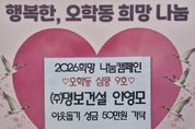 (뉴스핏 = 김호 기자) 여주시 상거동에 위치한 ㈜명보건설은 지난 5일 지역 내 어려운 이웃을 위한 성금 50만 원을 오학동행정복지센터에 기탁했다. ㈜명보건설은 포장공사업을 중심으로 지반조성 및 포장공사, 상·하수도 설비공사업, 건축자재 및 골재 관련 사업 등을 수행하고 있는 기업으로, 지역사회와 상생하는 기업으로서 꾸준한 나눔을 이어오고 있다. 특히 지난해에 이어 올해도 성금을 기탁하며 지역사회에 따뜻한 온정을 전했다. 안영모 대표이사는 “지역사회에서 받은 관심과 성원에 조금이나마 보답하고자 성금을 기탁하게 됐다”며 “앞으로도 지역의 어려운 이웃과 함께하는 나눔 활동을 이어가겠다”고 말했다. 김병선 오학동장은 “매년 잊지 않고 이웃사랑을 실천해 주시는 안영모 대표이사께 감사드린다”며 “기탁해 주신 성금은 도움이 필요한 관내 취약계층을 위해 소중히 사용하겠다”고 전했다. 한편 이날 기탁된 성금은 오학동 지역사회보장협의체를 통해 관내 취약계층 지원을 위한 복지사업에 사용될 예정이다.