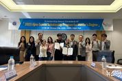 (뉴스핏 = 김호 기자) 수원시국제교류센터가 17일 아주대학교 율곡관 제1회의실에서 ‘2025 아주-수원 석사과정 장학증서 수여식’을 열고, 자매·우호도시 출신 유학생들에게 장학증서를 전달했다. 아주-수원 석사과정 장학지원 프로그램은 2014년부터 이어지고 있다. 지금까지 28명(8개국)의 장학생을 배출했고, 등록금과 기숙사비 전액을 지원했다. 장학생들은 국제경영과 국제개발협력 등 전공을 공부하며 수원과 자매도시를 잇는 역할을 하고 있다. 이번 학기에는 모로코 출신 살마 엘 미크담(Salma El Miqdame), 멕시코 출신 드파르동 하소 루이스 펠리페(Depardon Jasso Luis Felipe) 등 2명이 장학생으로 선발됐다. 이날 행사에는 이성주 수원시국제교류센터장, 장병윤 아주대학교 국제대학원장 등이 참석했다. 이성주 수원시국제교류센터장은 “장학생들이 수원에서 한국 문화를 배우고, 자매도시와 수원을 연결하는 국제 전문가로 성장하길 바란다”며 “다양한 도시의 인재를 유치해 지역 경쟁력 강화에 힘쓰겠다”고 말했다.