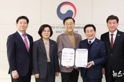 (뉴스핏 = 김수진 기자) 안성시는 26일 정부세종청사 국토교통부를 방문해 ‘중부권 광역급행철도(JTX) 조기 추진 공동건의문’을 전달하고 사업의 조속한 추진과 상생발전을 향한 의지를 밝혔다. 이번 건의는 안성시를 비롯해 성남시·광주시·용인시·화성시·진천군·청주시 등 7개 지자체가 공동으로 참여한 것으로, 중부권 광역 교통망 확충의 필요성을 정부에 공식 건의하고자 마련됐다. 중부권 광역급행철도는 서울 잠실에서 출발해 안성과 청주공항 등을 연결하는 사업으로 안성의 경우, 반도체 등 산업 경쟁력 증진과 수도권·충청권 간 물류 강화, 일자리 창출, 인구 증가, 이동 편의성 증진, 정주여건 개선 등 다양한 효과가 기대되고 있다. 이날은 김윤덕 국토교통부 장관을 만나 면담도 진행됐으며, 각 지자체는 중부권 광역급행철도가 수도권과 충청권을 연결하는 핵심 교통 인프라로써 지역 간 이동 개선과 생활권 통합, 국가균형발전 등에 크게 기여할 것이라는 점을 강조했다. 안성시는 공동건의문 전달과 함께 철도와 도로 분야 등 시민 교통편의 증진과 지역 성장 기반 강화를 위한 사회간접자본(SOC) 현안사업의 지원도 함께 요청했다. 시 관계자는 “중부권 광역급행철도는 단순한 교통사업을