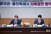 (뉴스핏 = 김수진 기자) 용인특례시는 6일 강원특별자치도 양구군과 자매결연을 하고, 두 도시의 교류와 발전을 위해 적극 협력하기로 했다. 이상일 시장은 이날 양구군청 중회의실에서 서흥원 군수와 두 도시 간 우의를 증진하고 상호 교류‧협력하는 데 합의하고, 자매결연 협약서에 서명했다. 이번 협약으로 양구군은 시의 16번째 자매도시가 됐다. 이상일 시장은 “양구는 문화예술 분야에서 과감한 투자를 하고 있고, 양구군립박수근미술관은 2023년 양구 출신 박수근 화백의 1956년 작품 ‘가족’을 품었는데 두 도시가 앞으로 가족처럼 잘 지냈으면 한다”며 “이번 협약을 계기로 양 도시가 협력을 강화해서 함께 발전하길 기원한다”고 말했다. 이 시장은 “양구군과 용인시의 훌륭한 농산물들이 양 도시에서 소비하도록 서로 홍보하는 등 협조 체계를 갖추는 노력도 기울이자"라며 "양구에는 테니스장, 축구장 등 스포츠 시설이 아주 잘 갖춰져 있는 만큼 용인의 스포츠팀이나 단체들이 양구를 찾아 훈련하는 등 체육 분야의 협력도 도모하면 좋겠다"고 했다. 서흥원 군수는 “용인의 인프라와 비전이 대한민국 지방자치단체 중에서 가장 선도적 역할을 하고 있다는 생각을 하며, 이번 협약을 계기로