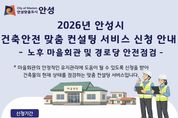 (뉴스핏 = 김수진 기자) 안성시는 올해 ‘건축안전 맞춤 컨설팅 서비스(노후 마을회관 및 경로당 안전점검)’를 시행한다고 23일 밝혔다. 건축안전 맞춤 컨설팅 서비스는 관련 법령상 정기 점검 의무가 없어 정확한 실태 진단과 안전 취약 요소 파악에 어려움이 있는 소규모 노후 마을회관 및 경로당을 대상으로 안전점검을 실시해, 건물 노후화로 인한 안전사고를 예방하고 시민의 안전한 생활환경 조성에 기여하고자 시행하는 사업이다. 점검 대상은 '건축물관리법' 제15조에 따른 소규모 노후 건축물 점검 대상 중 안전에 취약하거나 재난의 위험이 있다고 판단되는 마을회관 및 경로당이다. 주요 점검 항목은 ▲ 건축물 주요 부재의 구조적 균열과 변형 상태 ▲ 건축물 비구조체 결함 사항 ▲ 주변 축대, 옹벽, 담장 등의 안전상태 등이며, 점검자가 직접 현장을 방문해 육안점검 방식으로 진행된다. 점검을 희망하는 마을회관 및 경로당의 소유자 또는 관리자는 신청서를 작성해 안성시청 건축과에 방문 접수하거나 등기우편으로 접수할 수 있으며, 신청은 연중 상시 가능하다. 점검 후에는 건축물 관리자에게 점검 결과와 함께 보수·보강 등 개선 방안을 안내해 건축물에 대한 체계적인 유지관리가 이루어